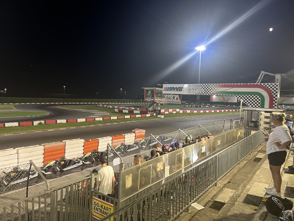 Większy problem to jakość obsługi. Po zakupie biletu stajemy w kolejce w wąskim korytarzu niczym do bramki na stadionie i obsługa wpuszcza nas jak leci. Tak jest, dorosłych, młodzież, dzieci i ojców z maluchami na taxi. To nie koniec — nie ma żadnej odprawy, nic o flagach, do wózków i wio! Nigdy czegoś takiego nie widziałem. Ten kto mnie zna wie, że jestem człowiekiem czynu a nie przepisów i formalności. Ale do cholery! Puszczać napaleńców z 6-latkami w jednym biegu bez jakiegokolwiek wprowadzenia? Do tego w ilości co najmniej 20 gokartów? Dość powiedzieć, że przez 2 biegi nie miałem choćby jednego czystego kółka.