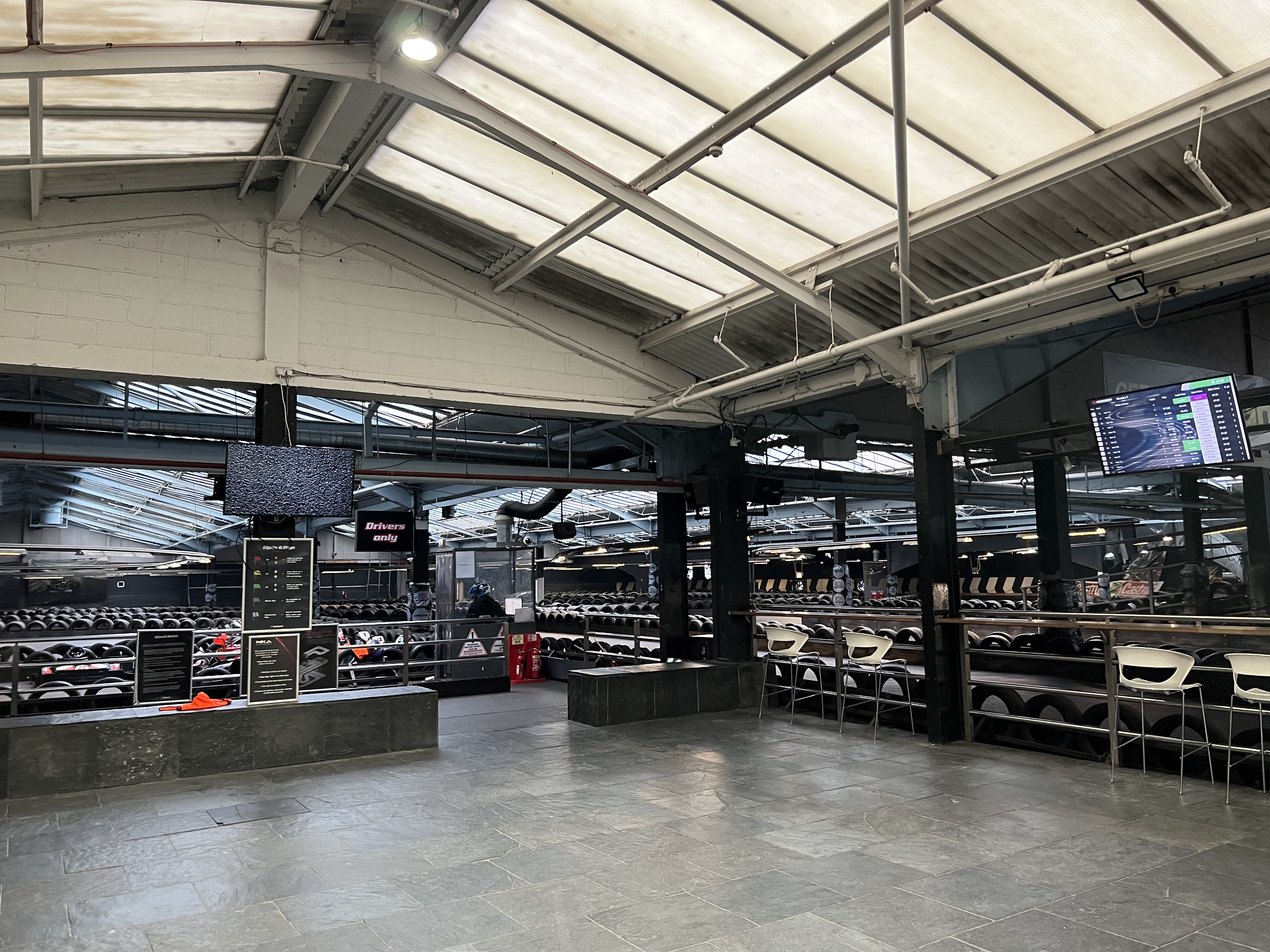 Ukryty na bardzo przemysłowym terenie po "drugiej stronie Tamizy" okazuje się jednak prawdziwą perłą. Sam obiekt, z zewnątrz kompletnie niepozorny, jest bardzo przestronny. Oferuje przebieralnię i część „barową”, a wszystko w motorsportowym klimacie, z kaskami i zdjęciami wielkich kierowców.
