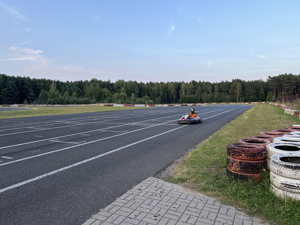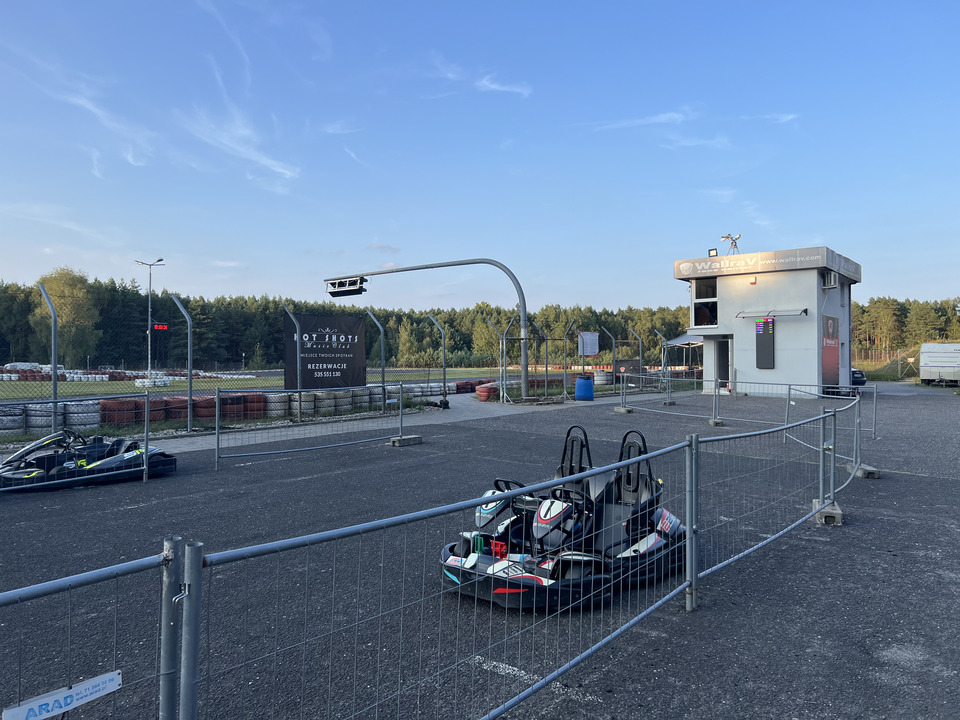 Zacznijmy od toru, który jest... ok. Nitka może nie jest wyszukana i przesadnie długa, ale jest szeroka, przez co to jest bardzo szybki. Pierwszy zakręt to "patelnia", którą pokonujemy naprawdę szybko, drugi zakręt ma fajny camber, dzięki czemu można go jechać szybciej niż pozornie się wydaje. Niestety dla "ludzi z ulicy" to jest skracany i zamiast podwójnego prawego mamy nawrót poprowadzony przez wyboisty asfalt (o czym jeszcze za moment). Sprawia to, że to tor to tak naprawdę 5 zakrętów, a więc - przyznacie - trochę mało. Argument bezpieczeństwa mnie nie przekonuje. Ostatniego zakrętu nie widziałaby obsługa, ale można zainstalować kamerę. Czasem mam wrażenie, że tory wychodzą z założenia "ciesz się, że możesz jeździć". A przecież mówimy tu o usłudze, która nie jest tania. 10 minut jazdy gokartem RT8 kosztuje 75 złotych. Wózki - tu mam mocno mieszane uczucia. Mamy ich 5 rodzajów: