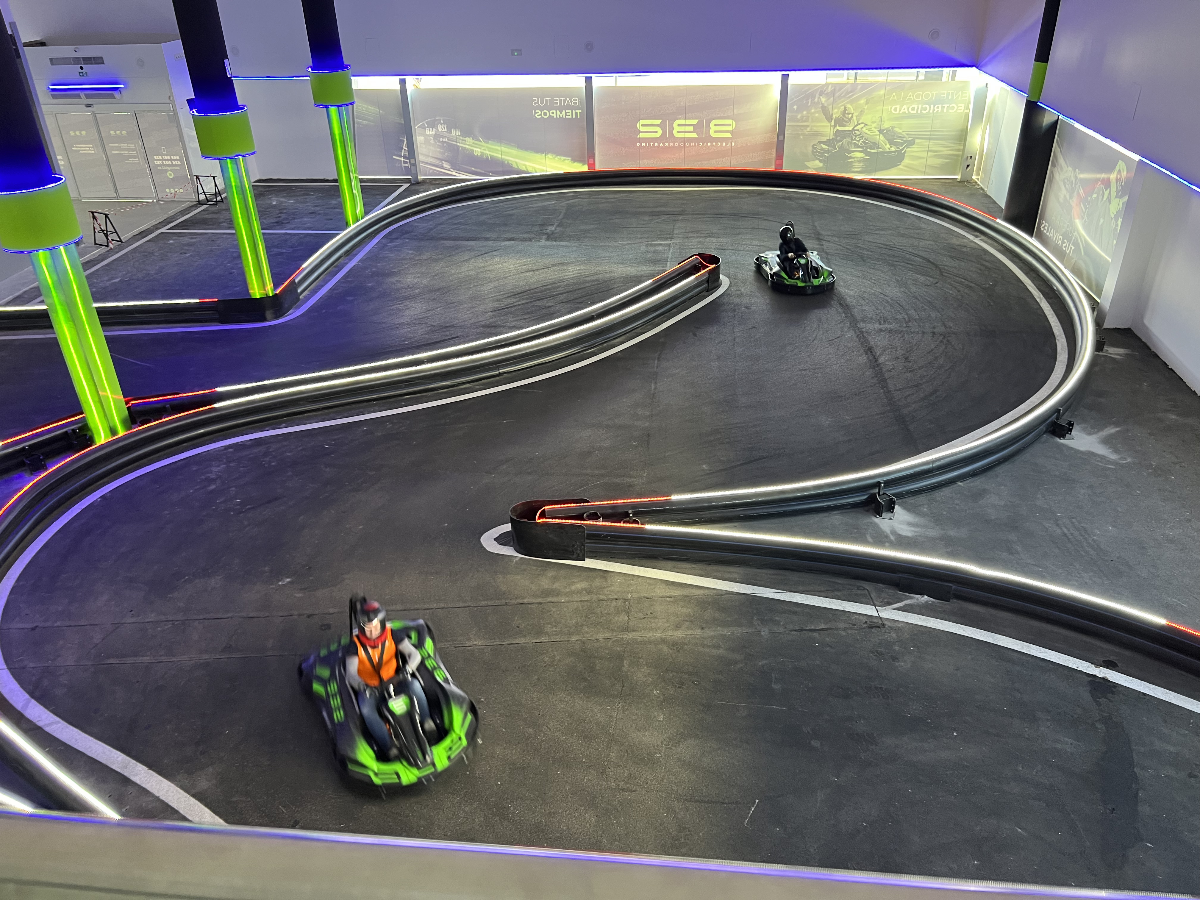 W Alicante jest nowiutki – schody na recepcję to był jeszcze goły beton, ale cały obiekt naprawdę został przyjemnie zaplanowany. Tor oferuje wózki elektryczne - ja co prawda wolę spalinowe, ale te były w perfekcyjnym stanie i zapewniły fajny trening (w elektryku należy unikać całkowitego puszczenia gazu bo wtedy gokart bardzo zwalnia). To jeden z nielicznych torów, gdzie nie było problemu losowego wózka, bo po prostu wszystkie były nowiuteńkie. Co więcej, za 50 euro były 3 przejazdy, więc jak na ten standard to naprawdę dobra cena.